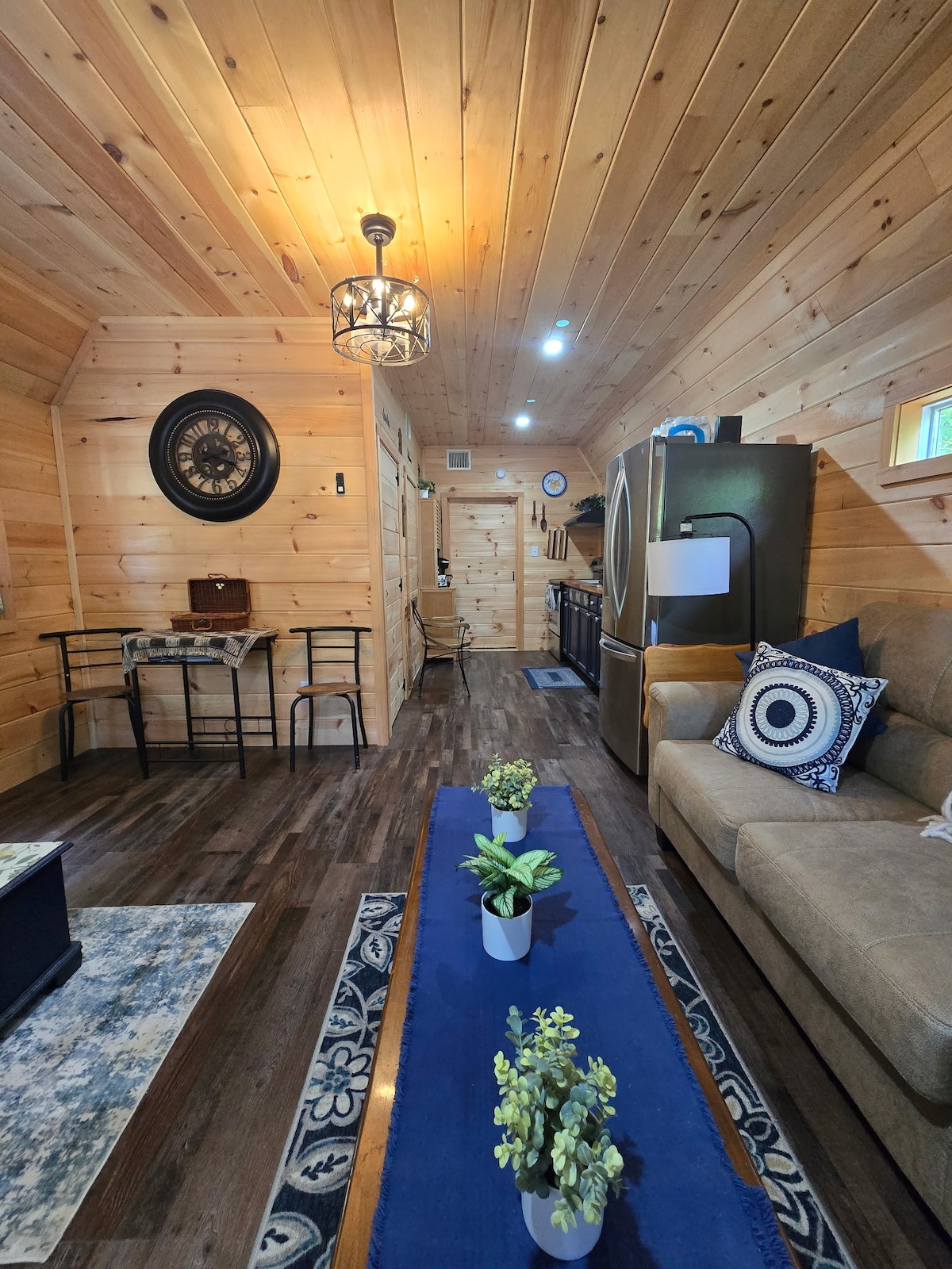 Cozy tiny house just 5 mins from Lake Barkley and 16 mins from historic downtown Cadiz. Sleeps 4 with a queen bed, loft full size bed, and comfy couch. Includes full kitchen, bathroom with walk-in shower, washer/dryer. Outside: fire pit, hammock, picnic table, grill, cornhole, and parking for 2 vehicles + boat. Near great dining, including the local favorite, The Fishing Hole.