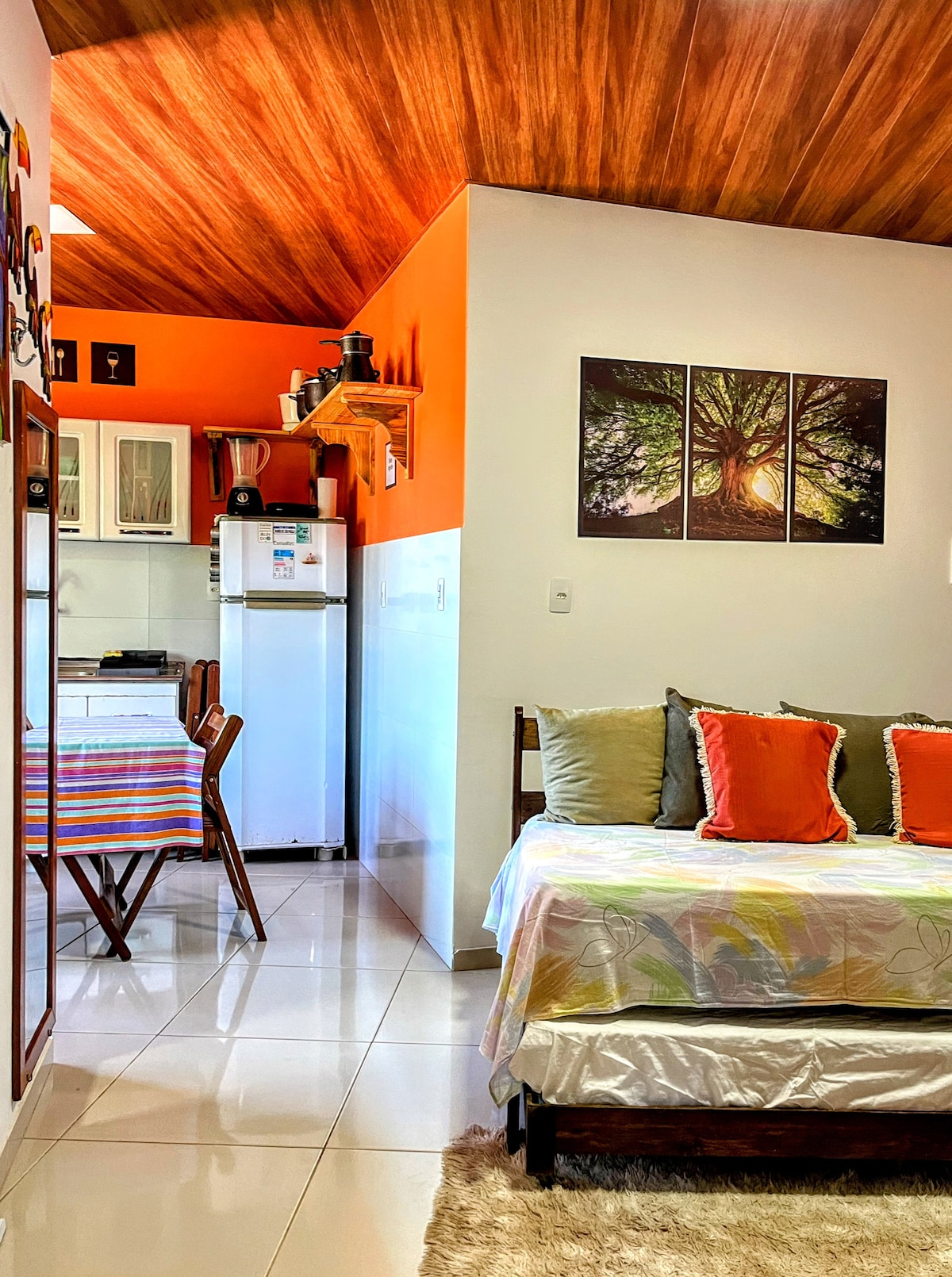 Apartmen yang berventilasi baik dan cerah, beberapa meter dari pusat bandar. Terletak di Rua da Lagoa, apartmen ini hanya 6 minit dari Vila dan 12 minit dari pantai utama, tanpa bukit atau tangga — sesuai untuk mereka yang lebih suka mobiliti mudah. Sesuai untuk pasangan, keluarga kecil atau rakan yang ingin mengalami tenaga sebenar Morro de São Paulo.