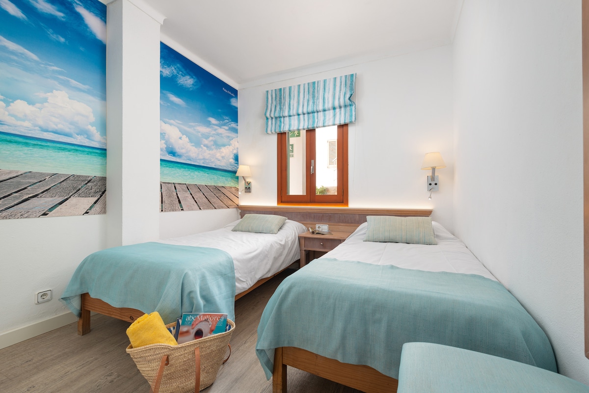 APARTMEN PEMANDANGAN CERIA RESORT APARTMEN pelancong 150 meter dari laut, menikmati salah satu lokasi yang paling istimewa di pulau ini, yang terletak di timur Mallorca, di mana kami menemui satu set pantai yang indah dan teluk paradisiacal dengan pasir putih dan perairan yang jernih. Apartmen ini hanya 1 minit berjalan kaki dari Cala Anguila, 2 minit dari Cala Mendía, dan 3km dari Porto Cristo. Seluruh kompleks mempunyai WIFI berkelajuan tinggi PERCUMA (fiber)