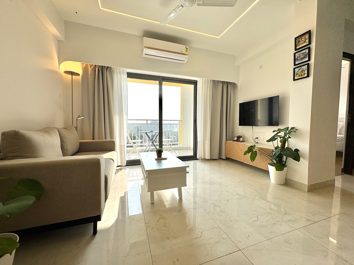 NEW! Pool View 2BHK | 10min to beach | Jaccuzzi