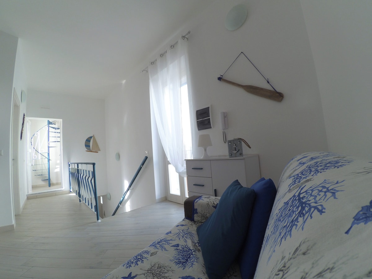 L’appartamento situato al primo piano, è accogliente negli interni e dotato dei comfort per una vacanza di relax. Inoltre ha una panoramica terrazza coperta, da cui si può godere di una meravigliosa vista mare. È’ composto da un soggiorno , cucina a vista ben attrezzata, camera da letto matrimoniale con A/C, cameretta con letti singoli con A/C , bagno con doccia e lavatrice, al secondo piano piccolo bagno( senza bidet), terrazza con tavolo e sedie. CIN: IT111008C2000P7023