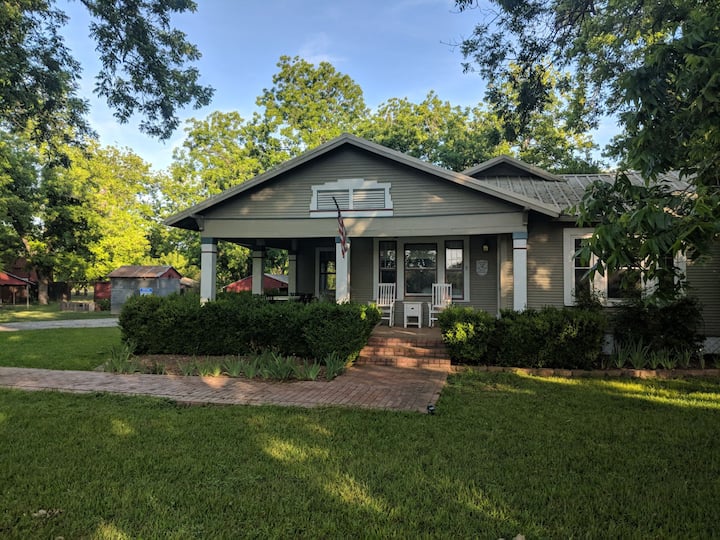 Penyenaraian ini adalah untuk seluruh tempat. Rumah Ladang Texas Moden bersejarah 1880 dipulihkan dengan penjagaan & pesona bersejarah. Tempat Penuh termasuk 4 bilik tidur besar dengan katil king, bilik mandi ensuite. Bilik tidur ke-5 ialah The Shed dengan katil Queen, berkongsi bilik mandi dengan Christopher Suite. Pancuran mandi luaran. Halaman persendirian yang besar, dek, patio, kolam renang , beranda, buaian rajut & ruang yang luas untuk berehat. Lubang api. 4 blok untuk berjalan kaki ke dataran, kedai BBQ, muzik, kedai vintaj, bar, kedai wain, galeri seni, restoran, & kedai kopi.