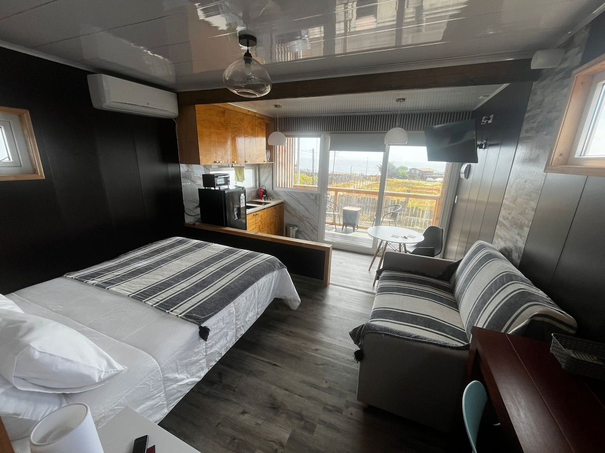 Cabaña minimalista en un terreno exlusivo de 1000 m sólo para ti. Tinaja exclusiva a tu disposición 24 horas al día. Sumérjete en agua caliente y disfruta del atardecer y las estrellas. Cabaña totalmente construida en madera. Interior, pisos y vigas a la vista. Siente la calidez de la madera y disfruta de las vistas al mar. Jardín privado con quincho y fogón de fogatas. Estufa de leña. Proyector con Netflix con pantalla gigante. Acceso al acantilado desde el terreno.