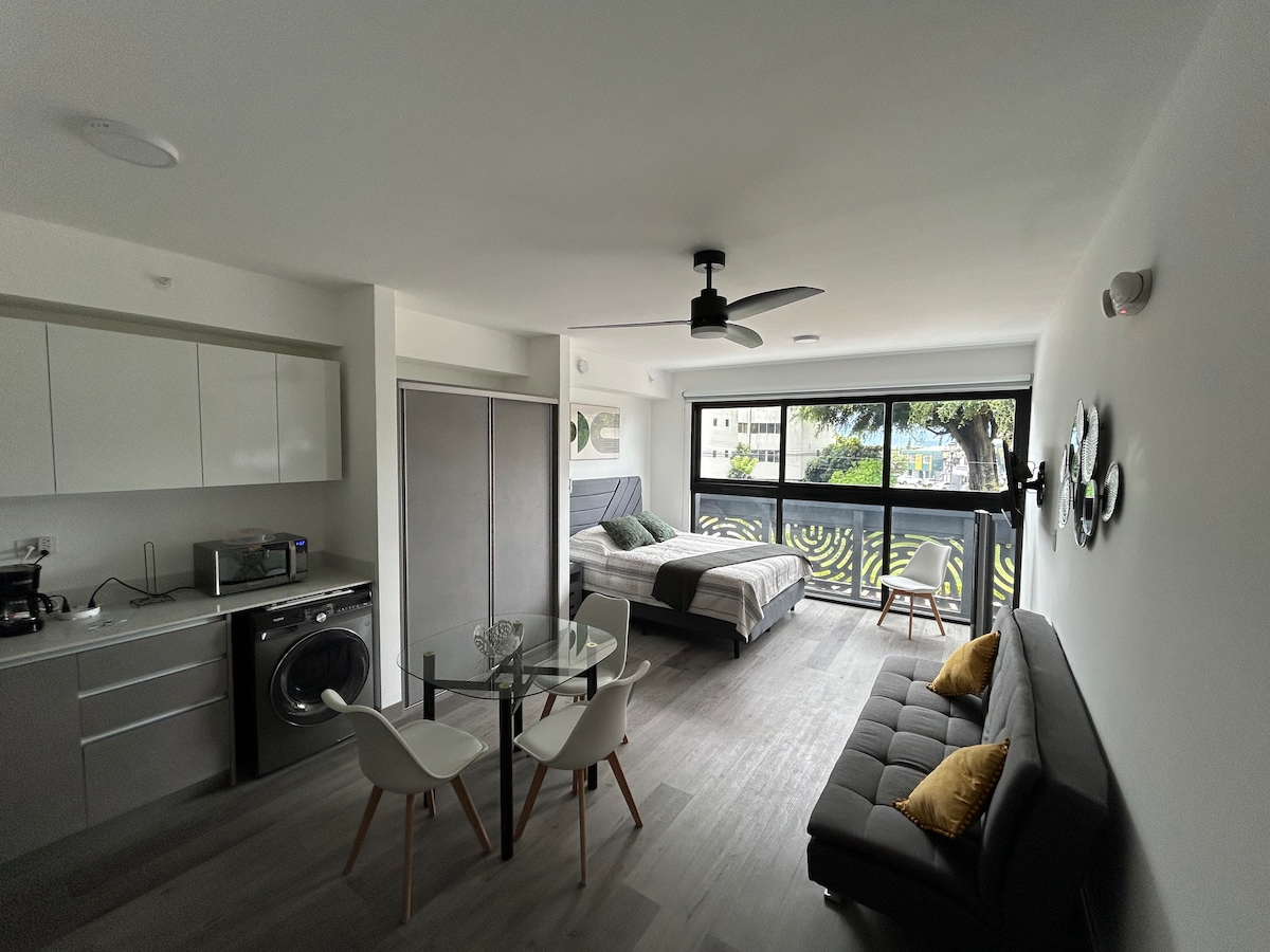 Nikmati kesederhanaan penginapan yang tenang dan berpusat ini di tengah-tengah Barrio Escalante, salah satu tempat yang paling eksklusif di bandar San José di mana anda akan menemui pelbagai jenis gastronomi, hospital swasta, klinik pergigian, Estetik . Studio kami akan menawarkan semua yang anda perlukan untuk penginapan yang lebih menyenangkan. Jika kita bercakap tentang pusat membeli-belah, anda akan menemui Multiplaza del Este dan Mall San Pedro yang paling dekat di mana anda akan menemui segala-galanya! Tidak sabar untuk berjumpa anda .✌️