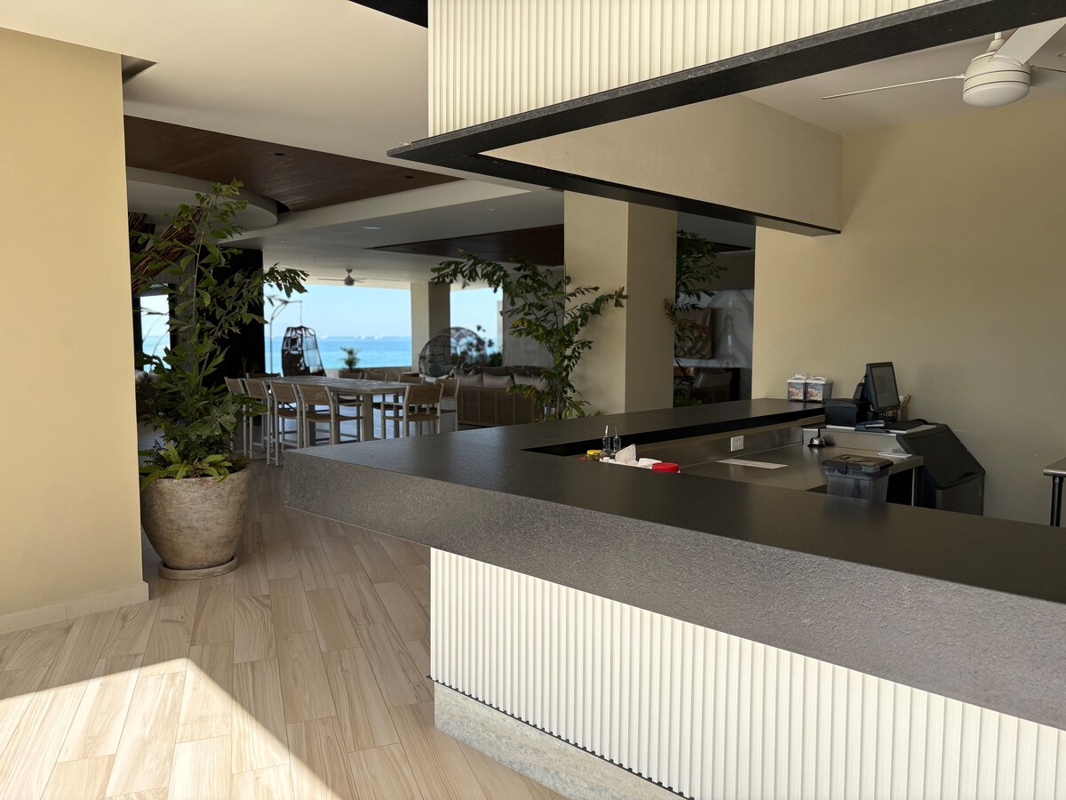 Kondominium baharu moden ini menampilkan 2 bilik tidur, 3 bilik mandi, dan sebuah studio, yang boleh menampung sehingga 6 tetamu! Balkoni sudut balutan menawarkan pemandangan kolam renang, padang golf, dan matahari terbenam Puerto Vallarta yang menakjubkan. Terletak di menara VGolf baharu, menyediakan suasana yang sempurna untuk kehidupan luar dan bersantai. Ruang tamu berkonsep terbuka menggabungkan ruang makan dan ruang tamu, dan ia dilengkapi sepenuhnya untuk memastikan penginapan yang selesa dan menyeronokkan. Kami tidak sabar untuk penginapan anda yang akan datang!!