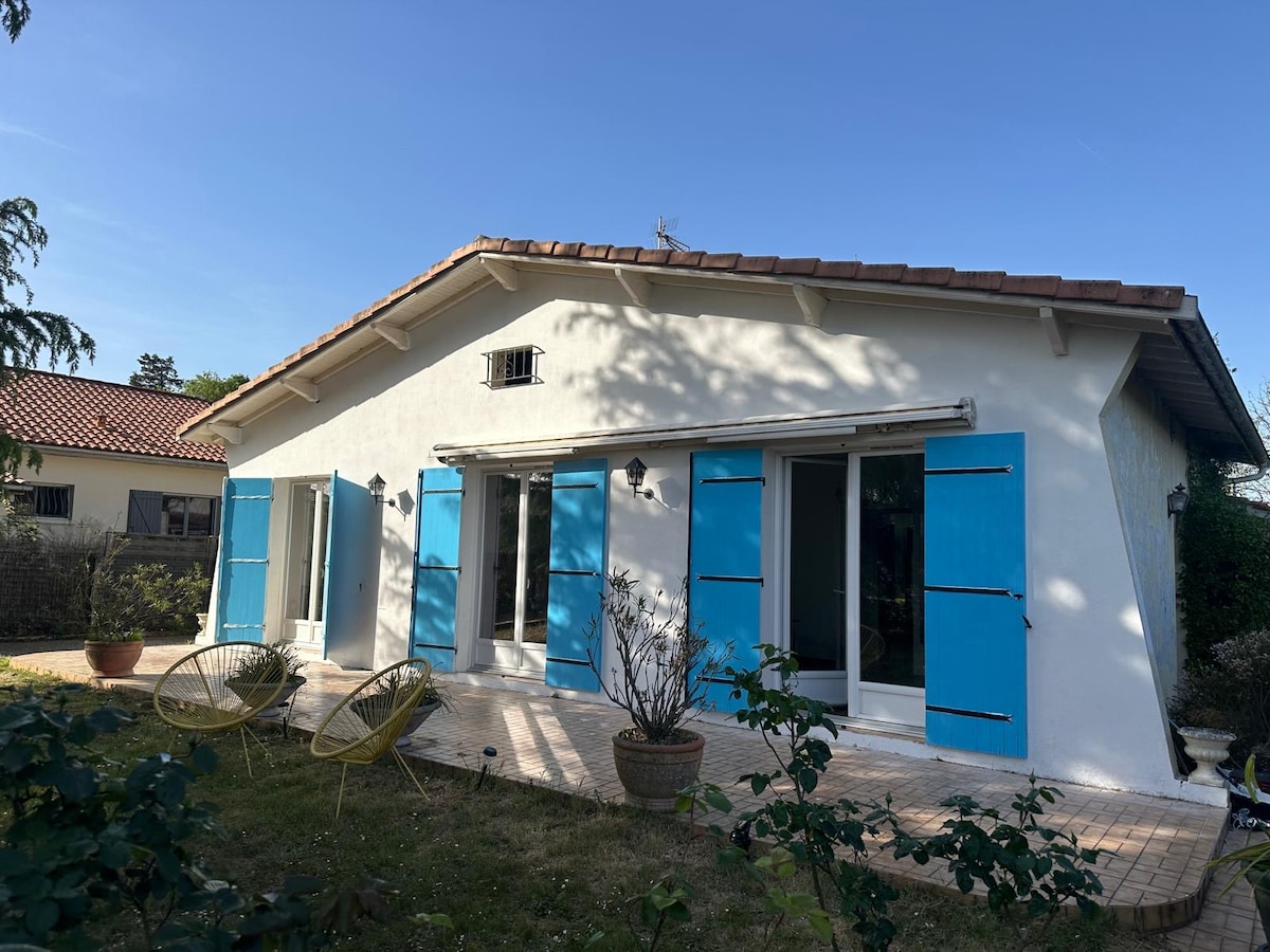 Bersantai di rumah baru, tenang dan bergaya ini. Kedai, restoran, taman dan pengangkutan (bas, trem, stesen kereta api) dalam jarak berjalan kaki, lapangan terbang 10 minit dengan kereta, hospital Haut-Lévêque dan Xavier Arnozan berhampiran, fakulti 15 minit dengan trem. Ruang tamu dengan dapur yang lengkap, ruang makan dan ruang santai dengan tv, meridian yang menghadap taman dan teresnya. Akses wifi berkelajuan tinggi. Bilik tidur berasingan. Bilik mandi dengan pancuran mandi dan mesin basuh.