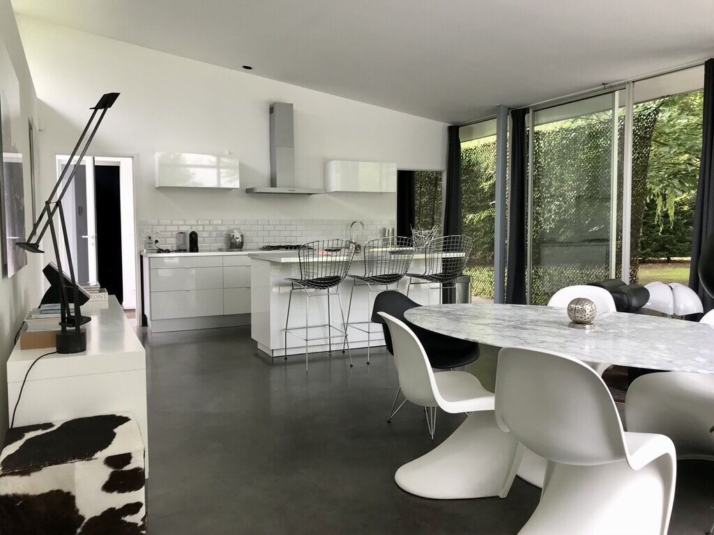 Rumah arkitek terletak 15 minit dari Bordeaux. Rumah ini mempunyai: - 3 bilik double termasuk satu dengan bilik mandi sendiri 1 bilik mandi berasingan - 2 wc berasingan - 1 bilik TV seluas 27m2 dengan dua katil bujang dan langsir gelap -1 ruang terbuka ke ruang makan 1 - ruang tamu menghadap kolam renang dan teres 120 m2 Taman persendirian seluas 2000 m2 berpagar sepenuhnya dan tidak terlepas pandang Rumah ini sangat tenang kerana ia terletak di hujung jalan masuk 70m.