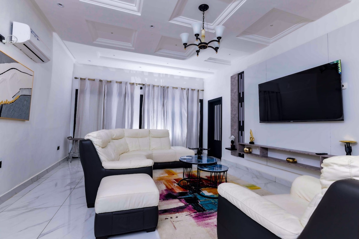 Ce logement paisible offre un séjour détente pour toute la famille. Points forts: Piscine - Agent de ménage disponible 7 heures par jour du lundi au samedi - Chambres autonomes - Parking interne - Groupe électrogène - Forage pour l'eau ...
