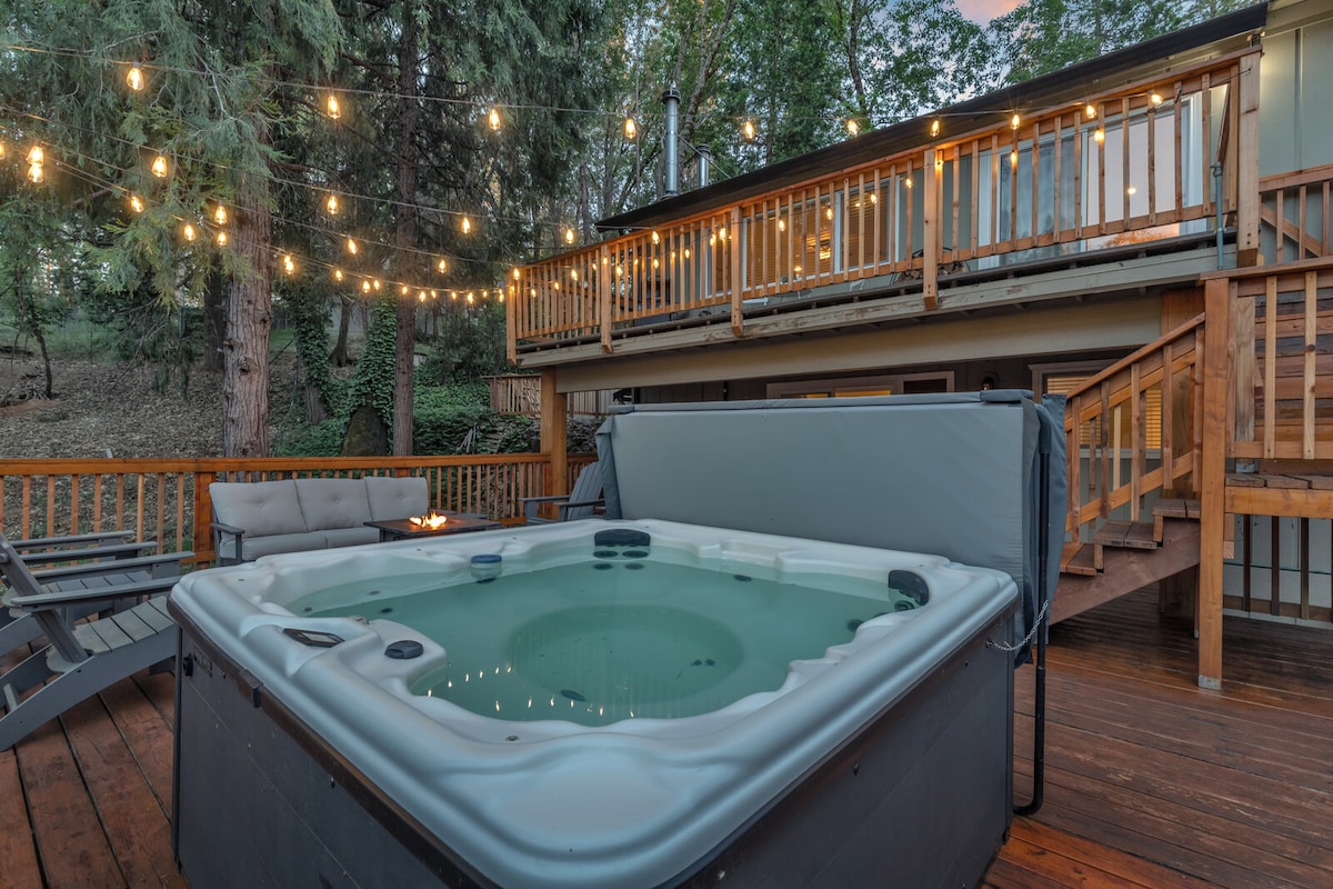 Terletak sempurna 5 minit dari pusat bandar & Kawasan Rekreasi Sly Park/Tasik Jenkinson yang tenang, kabin yang selesa ini memudahkan anda mencelupkan jari kaki anda ke dalam pengembaraan. Dengan ladang Apple Hill hanya 10-15 minit jauhnya, Placerville 20 minit ke bawah bukit, dan South Lake Tahoe 45-60 minit memandu singkat, anda tidak jauh dari keseronokan. Tetapi keajaiban sebenar berlaku di rumah. Bangun pagi dengan udara hutan yang segar, berehat di dek dengan secawan kopi, dan biarkan ketenangan alam semula jadi menjadi runut bunyi harian anda