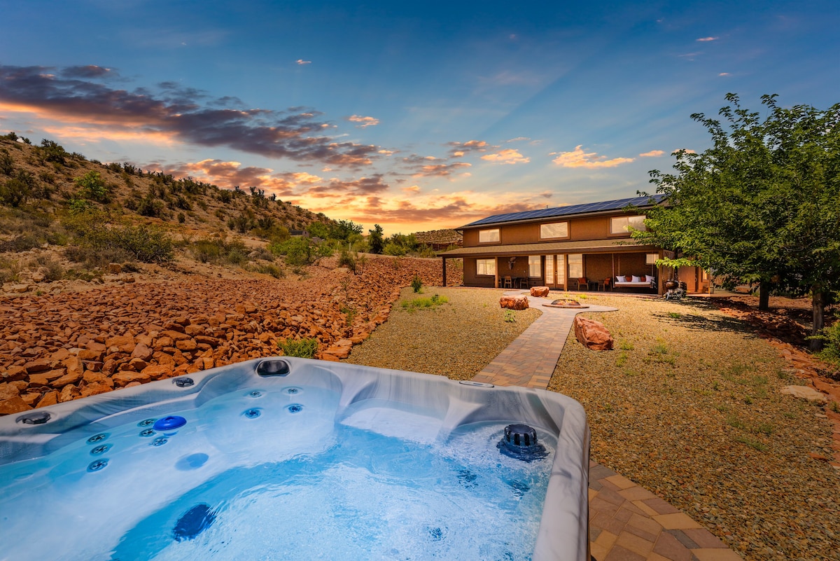 Pergi ke rumah tetamu oasis gurun peribadi anda berhampiran Sedona! Sesuai untuk sehingga 2 orang dewasa dan 2 kanak-kanak, percutian ini menampilkan pemandangan gunung yang menakjubkan, halaman belakang persendirian dengan tab mandi air panas dan lubang api, dan akses kepada gelanggang pickleball. Nikmati dapur lengkap, katil king, dan ruang kerja khusus. Gelanggang Pickleball tersedia untuk digunakan dengan temujanji sahaja. Kemudahan Pilihan: Tetamu boleh menyewa kolam air masin di rumah utama untuk kegunaan peribadi jika tersedia semasa penginapan anda.