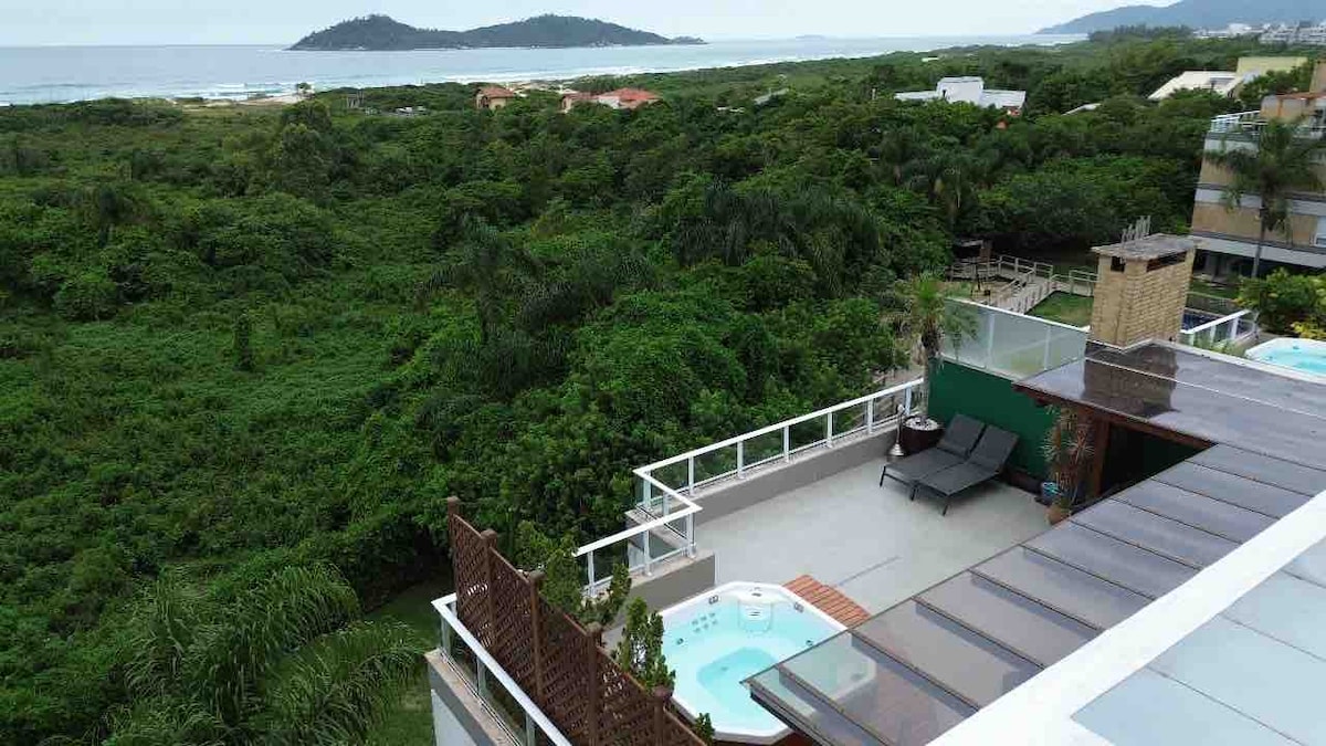 Penthouse mewah dengan privasi sepenuhnya, pemandangan laut, jakuzi, barbeku dan teres luar yang luas di hadapan pantai Campeche, salah satu pantai yang paling cantik di Florianópolis! Menghabiskan percutian anda di kondominium Thai Beach Home Spa seperti berada di resort 5 bintang! Dengan kolam renang dalaman yang dipanaskan, kolam renang infiniti luaran, jakuzi dalaman dan luaran, gimnasium, taman permainan, kawasan umum yang luar biasa! Lokasi pusat berhampiran restoran, kedai roti, pasar raya dan kedai.