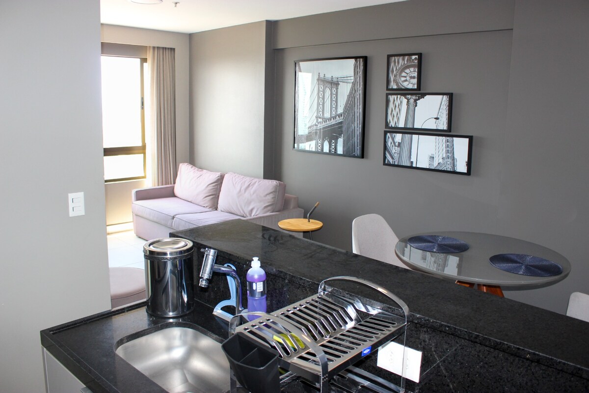 Apartmen moden dan selesa, sesuai untuk penginapan anda di Campina Grande. Mereka dilengkapi dengan 1 katil kelamin, bangku kerja, penyaman udara berpecah, peti keselamatan elektronik dan komputer riba, bar mini, pengering rambut dan TV kabel 43"dan WI-FI percuma.