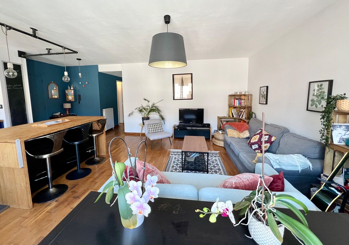 Kemaskan beg anda ke dalam kepompong 50m2 ini dengan teres Pusat bandar yang tenang Apartmen yang selesa, diubahsuai sepenuhnya dengan penjagaan khas untuk peralatan dan kebersihan. Kejiranan CHALET/COMPANS, amat dihargai oleh Toulouse Lokasi hebat 5 minit berjalan kaki dari Metro Compans-Caffarelli dan 15 minit berjalan kaki dari Place du Capitole Stesen kereta api 18 minit berjalan kaki di sepanjang terusan, 12 minit dengan bas, 5 minit memandu Pengangkutan ulang-alik lapangan terbang 5 minit berjalan kaki, 20 minit perjalanan Tempat letak kenderaan percuma 15 minit berjalan kaki
