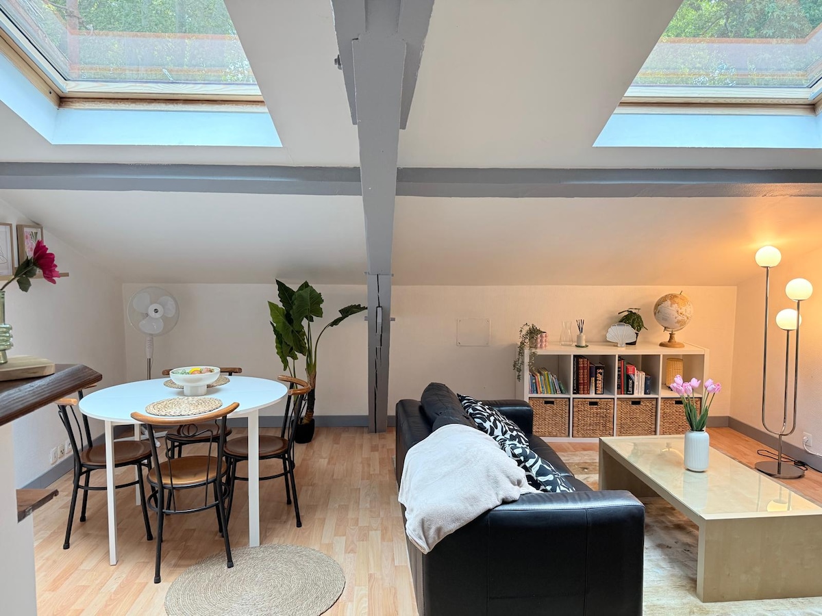 ✨ Dupleks satu bilik tidur yang selesa – Stesen MRT Compans 1 minit, pusat bandar Rumah berkembar elegan dengan hiasan yang menarik. Tingkat bawah: ruang tamu yang selesa dan dapur yang serba lengkap. Tingkat atas: bilik tidur yang selesa, bilik mandi dan ruang kerja khusus, sesuai untuk kerja jarak jauh atau penginapan perniagaan. Keselesaan dan kemudahan di pusat bandar Toulouse. - Termasuk linen, tuala dan kelengkapan mandi. 🔑 Daftar masuk sendiri 24/7 untuk penginapan siap sedia.