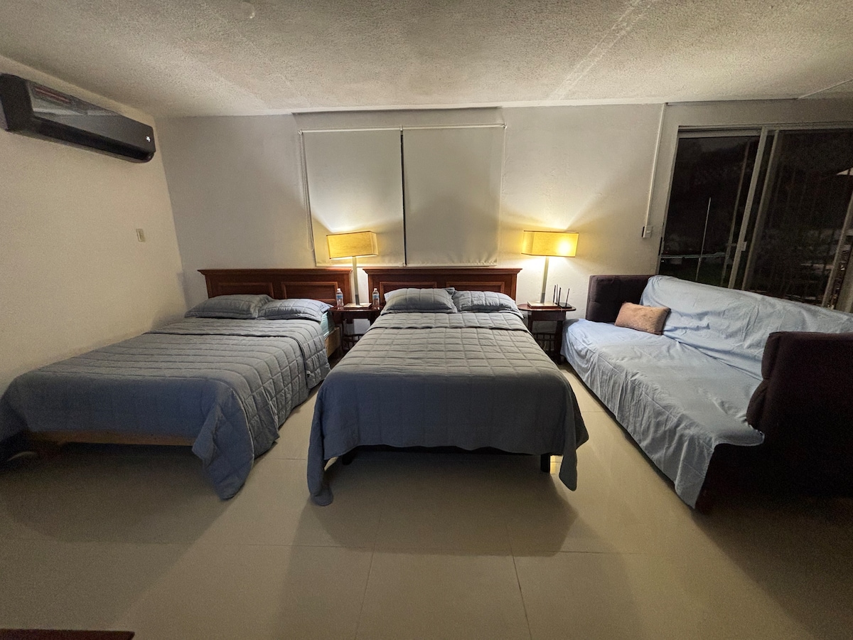 Departamento en planta baja moderno edificio. Se localiza en el Centro Histórico de Tampico con vista al Canal de la Cortadura. Cuenta con 3 recámaras climatizadas, 2 baños completos, sala climatizada con Smart tv, comedor, cocina equipada, balcón en recámara principal con vista al canal de la cortadura, y espacio de estacionamiento exclusivo. Area de juegos infantiles en parque frente al edificio. Cuna disponible bajo solicitud previa. Favor solicítela al menos 24 horas antes de su llegada