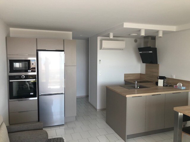 Nikmati rumah T2 yang bergaya dan berhawa dingin di kediaman baharu dengan tempat letak kereta persendirian dan lif tertutup Terletak kurang daripada 5 minit berjalan kaki ke pantai, bersebelahan dengan semua kedai dan pejabat pelancong Balkoni 15 m2: meja dan ruang tamu Dapur yang dipasang: dapur memasak induksi, ketuhar, ketuhar gelombang mikro, peti sejuk beku, mesin basuh pinggan mangkuk, mesin basuh, pengusung Bilik tidur: 140/200 katil selamat, almari Ruang tamu: 140/190 katil sofa, TV, wifi Bilik mandi: pancuran mandi/tandas/sinki, pengering rambut Premis berbasikal dan kereta sorong bayi ditutup