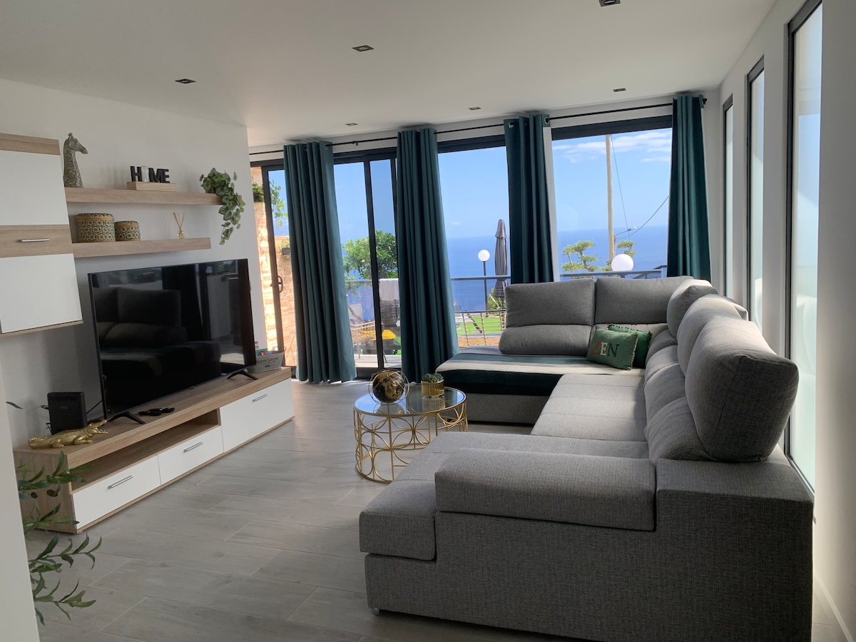 Tempat yang indah dengan pemandangan laut yang menakjubkan. Di kawasan yang terkenal dengan ladang pokok pisang. Sangat tenang dan menyeronokkan anda boleh menemui pantai dalam masa 5 minit dan semua perkhidmatan lain yang anda perlukan. Sesuai untuk berehat dan memulihkan tenaga semasa lawatan anda ke pulau ini. Berhampiran rumah anda akan menemui levada berjalan kaki dengan pemandangan indah ke atas landskap pergunungan yang menakjubkan di barat. Rumah ini penuh dengan cahaya matahari, cahaya semula jadi dan tenaga yang baik untuk anda. Jakuzi (yuran tambahan 40 €)