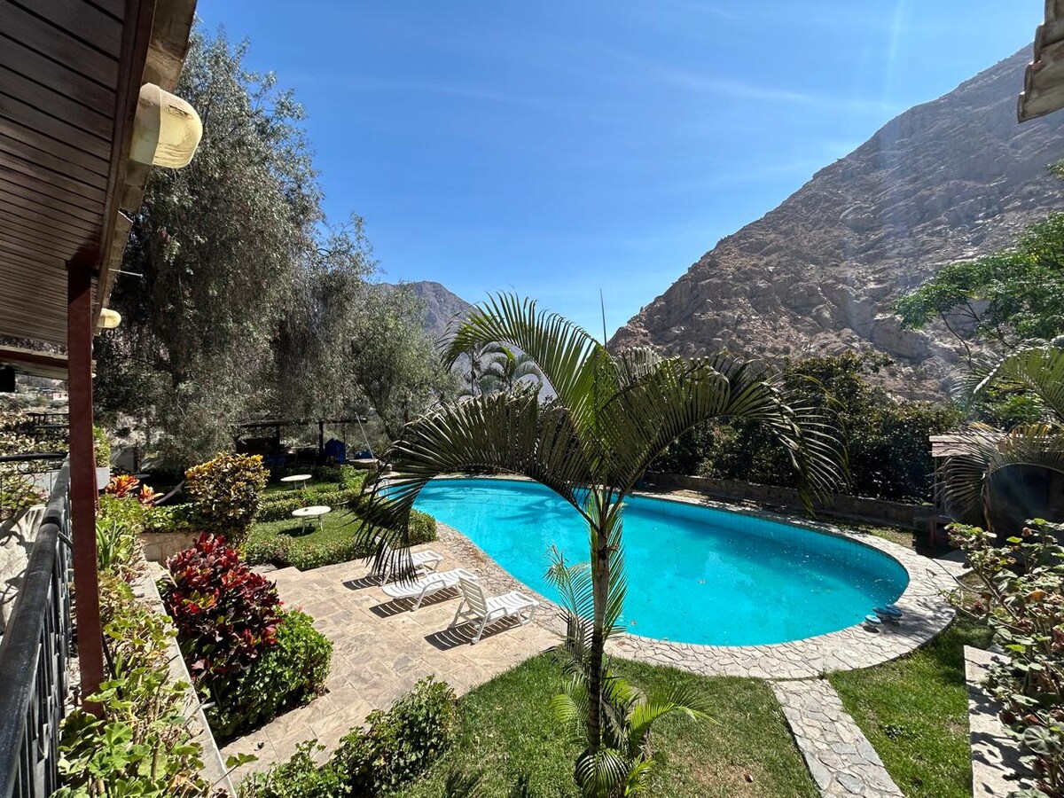 🌿 Nikmati percutian yang tidak dapat dilupakan di Kotej kami di Santa Rosa de Quives! Keluar daripada rutin dan berhubung dengan alam semula jadi dalam suasana yang tenang dan selesa, berehat, berseronok bersama keluarga atau rakan anda, dan nikmati detik-detik unik yang dikelilingi oleh udara segar dan pemandangan indah. 🌟 Yang terbaik di rumah kami: • 📌1 jam 30 minit dari Lima • 🏊♀️ Kolam renang persendirian • 🍽 Dapur lengkap (dapur + peralatan) • 🎯 Bola sepak meja • 📺 TV langsung • 🔥 Pemanggang BBQ • 🛏 Ruang yang luas