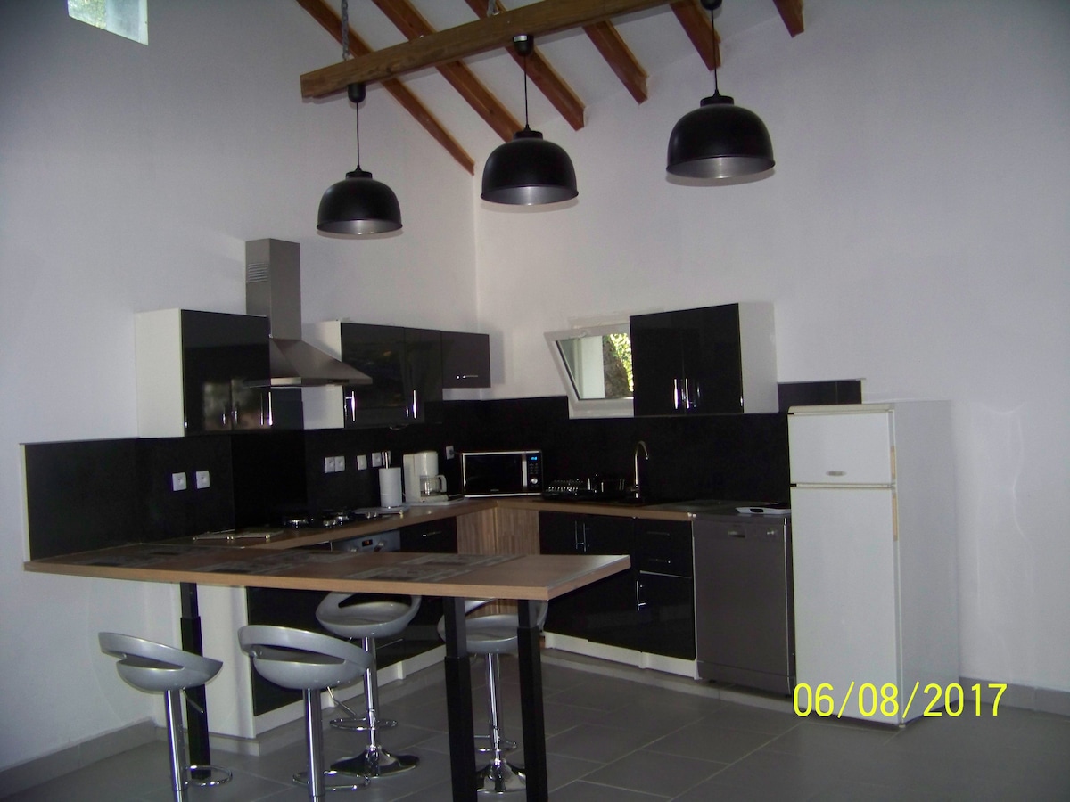 Studio seluas 24 m2, berhawa dingin, dengan katil di 140, dua katil dalam 90 tingkat, dapur kecil, bilik mandi dengan pancuran mandi, TV, akses Wifi, balkoni dengan pemandangan yang luar biasa, tempat letak kereta persendirian, di atas plot 1600m2 yang dinaungi oleh pokok zaitun seratus tahun,