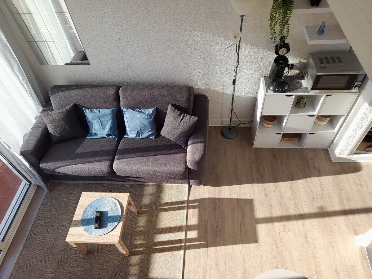 Apartmen yang menyenangkan seluas 45 m2, 2 bilik + mezzanine. Luas dan cerah, menghadap laut, berhawa dingin, lif tingkat 3. Pemandangan panorama laut yang indah, Fort Brescou dan preport, tidak diabaikan. Ruang tamu dengan tingkap teluk besar menghadap teres menghadap selatan, tidak kelihatan, awning bermotor dan perabot taman. Dapur dan bilik mandi diubahsuai pada tahun 2023. Bilik tidur dengan katil queen size 160cm. Mezzanine di tingkat atas dengan 2 katil 90 cm. Tempat letak kereta selamat percuma.