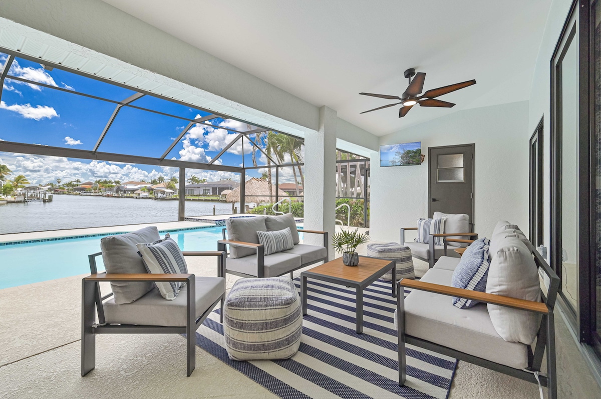 DISKAUN: Minggu...1=10%, 2=15%, 3=20%, 4=25%. Selamat Datang "Oasis"! Bercuti ke air dan menginap di terusan di Cape Coral yang indah! Nikmati rumah 3 bilik tidur, 2 bilik mandi ini. Berenang di kolam renang, duduk di patio, memancing dari dok, duduk di bar tiki untuk minum, atau tidur siang di lanai untuk melepaskan diri daripada semuanya! Terdapat dok sepanjang 50 kaki dengan 30 dan 50 amp, jadi bawa bot anda! Teluk ini boleh diakses dengan bot dan aktiviti Ft Myers Beach & Sanibel/Captive Island dan pantai berhampiran!!