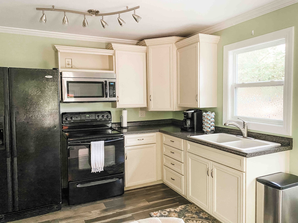 Terletak dengan indah di McDaniel Pine Farm di Wade, NC anda akan berasa seperti di rumah sendiri di Bluff Cottage. Persediaan studio dengan katil queen & 2 kerusi yang diubah menjadi katil single yang selesa. Terdapat juga tilam angin yang tersedia. Kawasan ruang tamu yang selesa dengan TV skrin rata yang besar dan ruang kerja desktop khusus. Bilik mandi persendirian, pancuran mandian berjalan kaki dan kawasan dapur kecil dengan pinggan panas, periuk belanga, pembuat kopi, ketuhar gelombang mikro & peti sejuk. Teres luar yang bagus dengan lubang api & ekar untuk berkeliaran!
