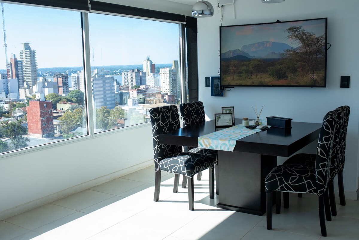 Terokai apartmen moden dan cerah di Costanera de Posadas, dengan pemandangan istimewa bandar ini. Sesuai untuk mereka yang mencari pengalaman premium: reka bentuk minimalis, ruang yang luas dan perincian yang direka untuk keselesaan anda. Sesuai untuk pasangan atau pengembara yang menghargai lokasi, gaya dan keselesaan, hanya beberapa langkah dari yang terbaik di bandar dan jambatan Encarnación Paraguay. 5 minit dari pusat bandar, pasaraya, bar dan restoran. Kolam renang di teres