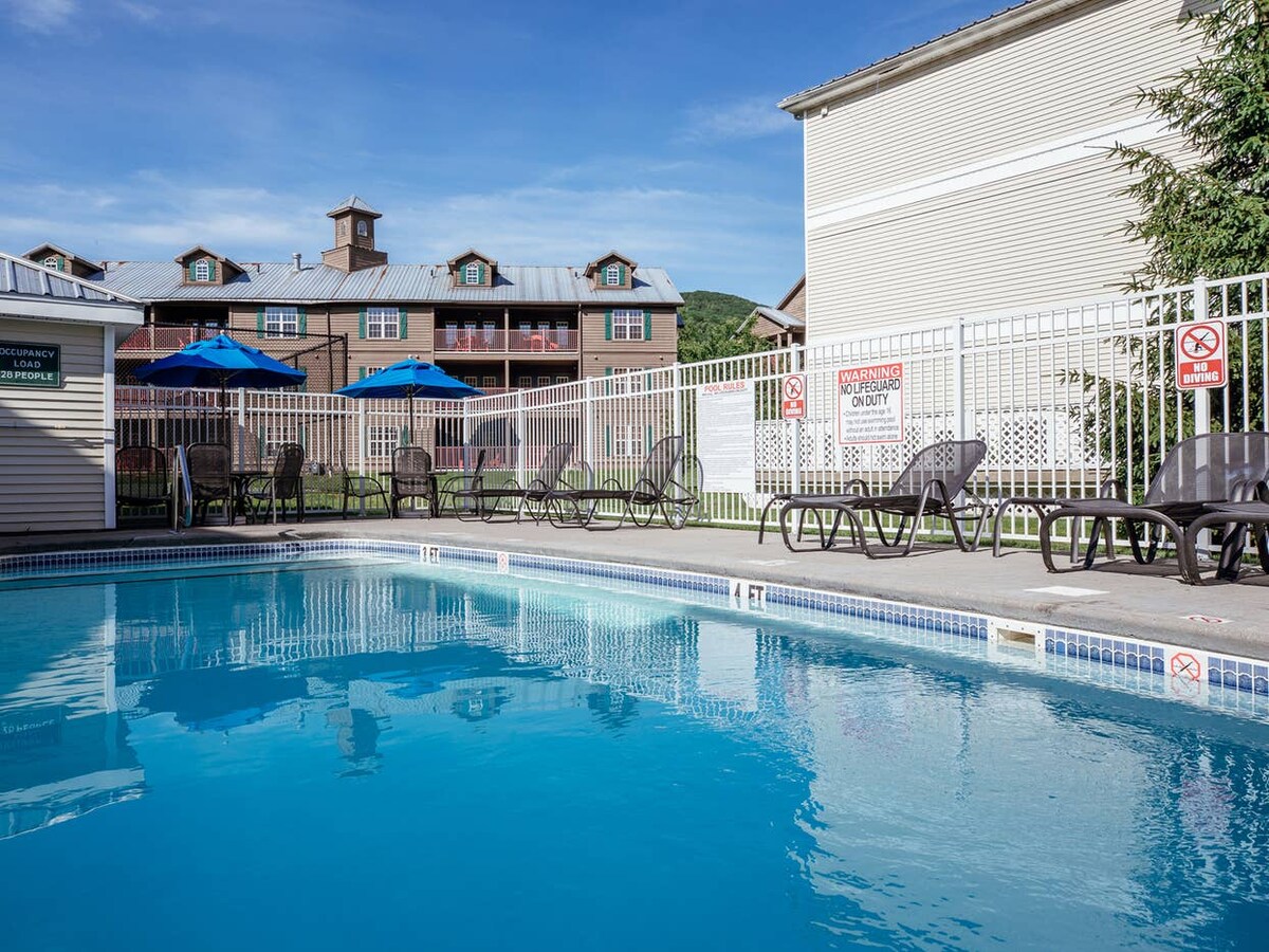 After a day of mountain adventures , our Resort in the Berkshires is the perfect New England-y place to unwind and kick off those hiking boots. Take the whole family for a relaxing indoor swim, enjoy a flick at our onsite movie theater, and end your evening with a toast at the Beartree Bar. • Pools, Gym, Movie Theater and mini golf • Accommodate up to 6 people • One guest in the party, must be at least 21 y/o or older. * U$10 PER NIGHT OF RESORT FEE(WAIVED) . **Additional charge