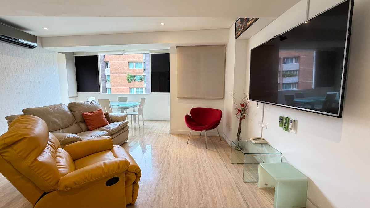 Apartmen yang lengkap, luas, selesa dan selesa, terletak di tenggara Caracas, kawasan eksklusif ibu kota di mana anda boleh menghirup ketenangan, ketenangan dan keselamatan. (5 minit dari Las Mercedes dan Valle Arriba) Apartmen ini mempunyai dapur lengkap, tangki sendiri, pendingin hawa di setiap bilik dan pemanas air, internet Wi-Fi, Magis TV, ruang tamu yang sangat santai, balkoni, akses pantas ke lebuh raya dan, terakhir, ruang letak kereta eksklusif untuk dua buah kereta.