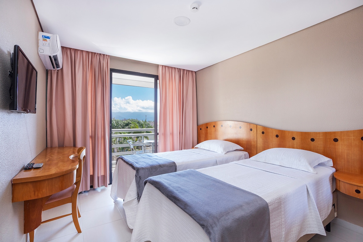 Bilik untuk dua orang di Hotel Lagoinha, dengan TV pintar, penyaman udara berpecah, bar mini dan WiFi. Bilik diubahsuai pada bulan September/23. Tempat letak kereta dalaman percuma. Perhatian: Memandangkan hotel masih dalam pengubahsuaian, kami hanya menawarkan bilik, tempat letak kereta dan kolam renang. Kami belum menyediakan sarapan dan perkhidmatan hotel lain. Pengemasan (tanpa sebarang kos tambahan) hanya selepas penginapan. Tetamu akan menerima kawalan pintu untuk akses dan kunci bilik. Sebarang soalan sila tanya