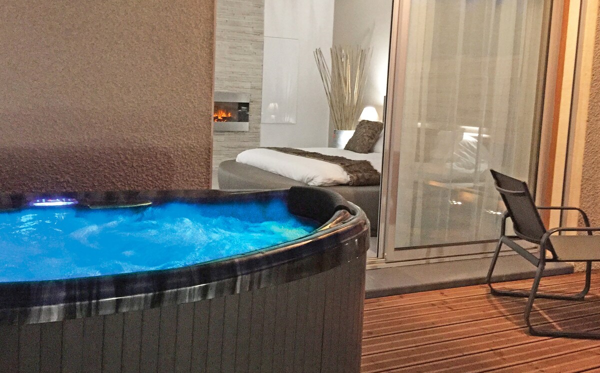LOFT SPA COTÉ CHÂTEAU "Le Loft Yellow". Nikmati penginapan yang tidak dapat dilupakan di tempat unik ini. Syurga keseronokan untuk pasangan 9 minit berjalan kaki dari Istana. Ia mempunyai tab mandi air panas luaran persendirian yang terlindung, pancuran mandi berjalan masuk, teres dan taman persendirian, lounge luaran dan katil berjemur. Tempat Letak Kereta Percuma dan WiFi. Aircond, WiFi TV, dapur penuh, ketuhar duo (standard dan ketuhar gelombang mikro), peti sejuk dan mesin kopi Tassimo. Anda sudah siap sedia apabila anda tiba!