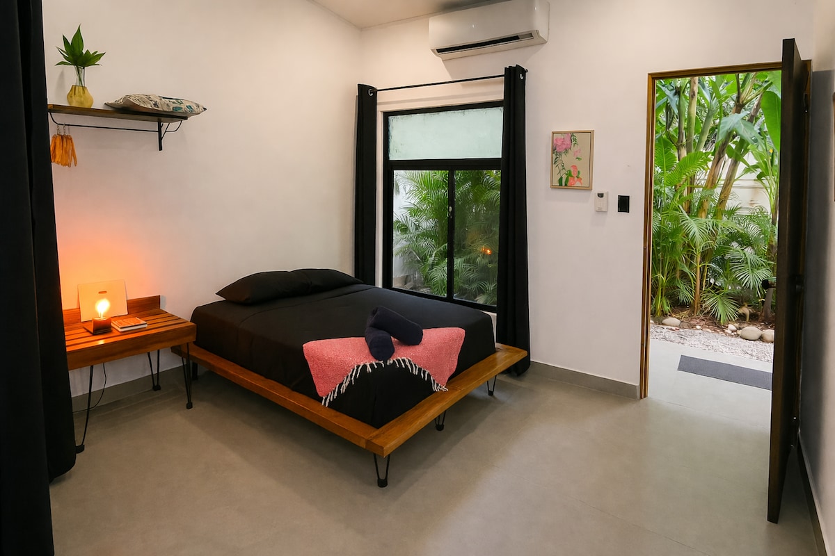 Suite moden dikelilingi oleh alam semula jadi, hanya 2 minit dari pantai luncur terkenal Playa Hermosa (berhampiran Jacó). Ruang selesa dengan 2 bilik tidur (dengan A/C), 1 bilik mandi, dan dapur/ruang makan luar yang ditutup. Bersantai di teres dengan pemandangan taman dan lihat monyet berwajah putih, burung macaw dan burung tukang yang melawat setiap hari. Suite tetamu berada di tingkat bawah dengan pintu masuk persendirian tetapi merupakan sebahagian daripada rumah kami di mana keluarga hos anda tinggal. Taman berpagar dan tempat letak kereta dikongsi dengan kami.
