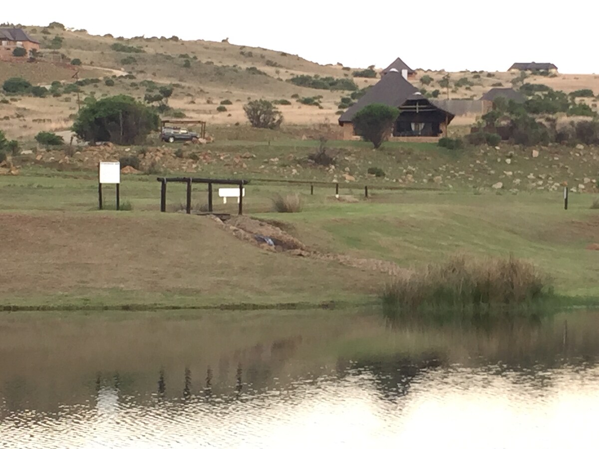 Lokasi tenang yang menempatkan 8 tetamu. 4 bilik tidur 2 en-suite. 2 bilik tidur di tingkat atas dengan pancuran mandi berkongsi. Ruang rehat, dapur, braai & ruang makan adalah pelan terbuka yang menuju ke patio tertutup. Berkongsi masa dengan pelbagai permainan, burung, bunga, air terjun & kolam batu yang menikmati hadiah kecil alam semula jadi. Kami terkenal dengan Fly fishing 365 hari! Laluan menunggang kuda, berenang, tenis, berbasikal & mendaki disediakan. Bukan destinasi parti. Tiada muzik kuat atau parti liar. Tiada haiwan peliharaan