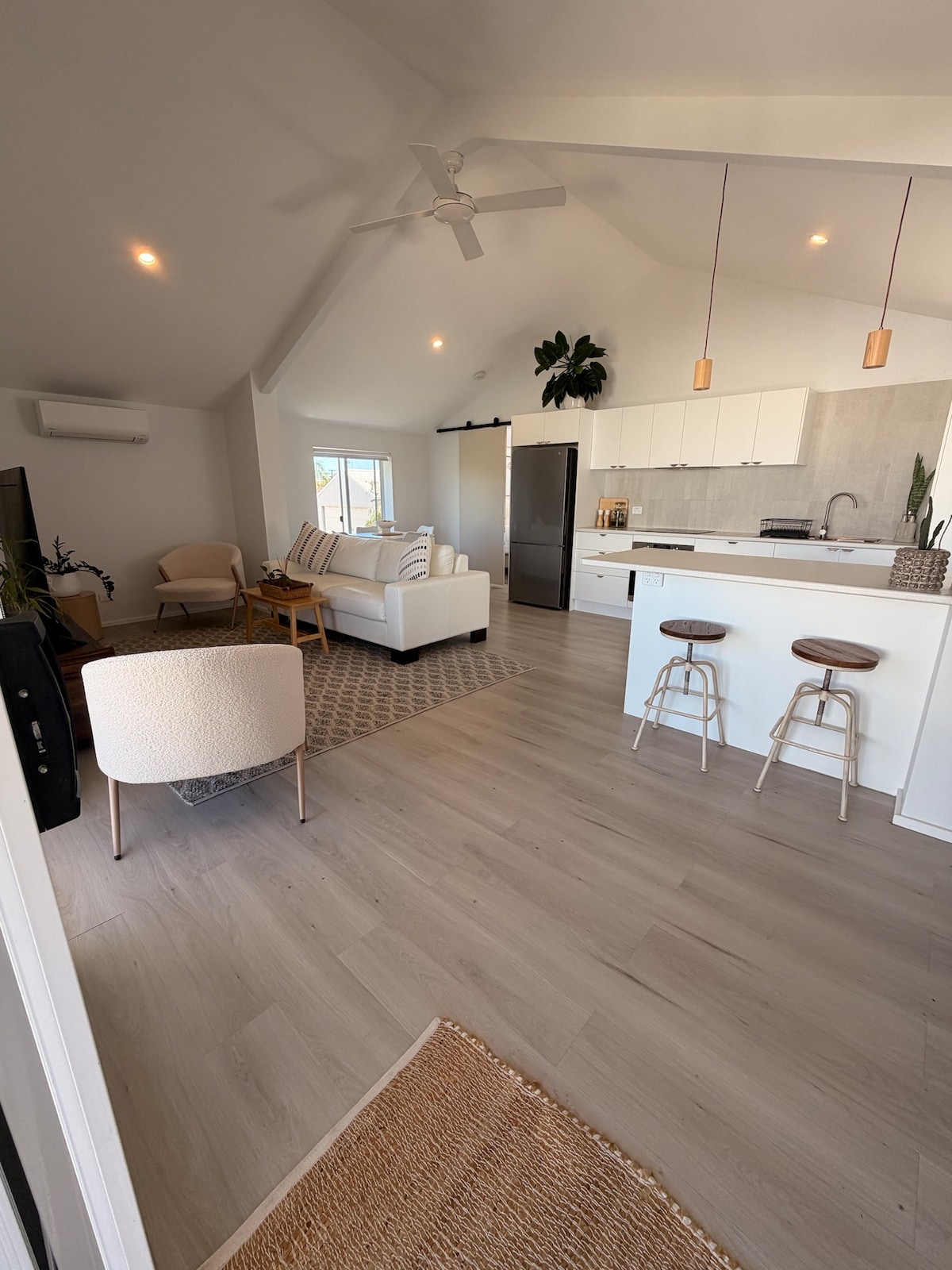 We aim to make you feel at home the moment you arrive. Wake up and enjoy a coffee, breakfast in the courtyard and freshen with arguably the best shower! Walking distance to cafes, pubs, restaurants, the bowlo, as well as shops, post office, public transport, parks and harbour. The home shares a wall with our house and floorboard noise can sometimes be heard from both houses. Please also note we are near working silos with original floorboards, so the house can quickly accumulate dust.