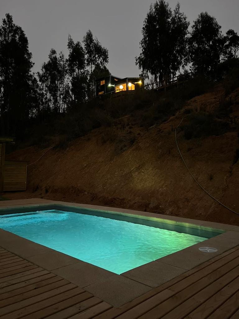 tempat yang indah di tengah-tengah kawasan desa, jauh daripada bunyi bising bandar, pada waktu subuh anda akan merenung canticle burung, pelbagai jenis tumbuh-tumbuhan asli, kawasan treking - basikal, 15 minit carob-tunquen. Isyarat telefon 4G yang sangat baik. MUZIK SEHINGGA JAM 10 MALAM KABIN DENGAN KOLAM RENANG SENDIRI Kabin unik dan eksklusif dengan kolam renang sendiri, anda tidak perlu berkongsi kolam renang dengan orang lain. Kolam renang ada dek besar dan kerusi rehat