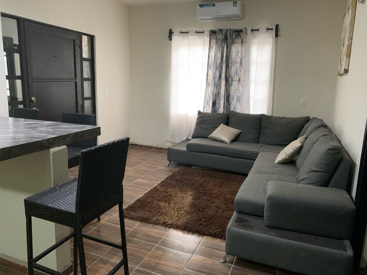 Keluarga anda akan berada berhampiran dengan segala-galanya jika anda menginap di penginapan pusat ini. 2 minit dari jalan utama untuk tempat pelancongan, 3 blok dari chedrahui, 6 blok dari pawagam dan aurrera, 4 minit dari pusat bandar, apartmen baru, lawatan melalui anda ke penginapan, gimnasium di luar pintu berkongsi anda, mesin basuh di luar apartmen dengan kos $ 100 untuk seluruh stansia.