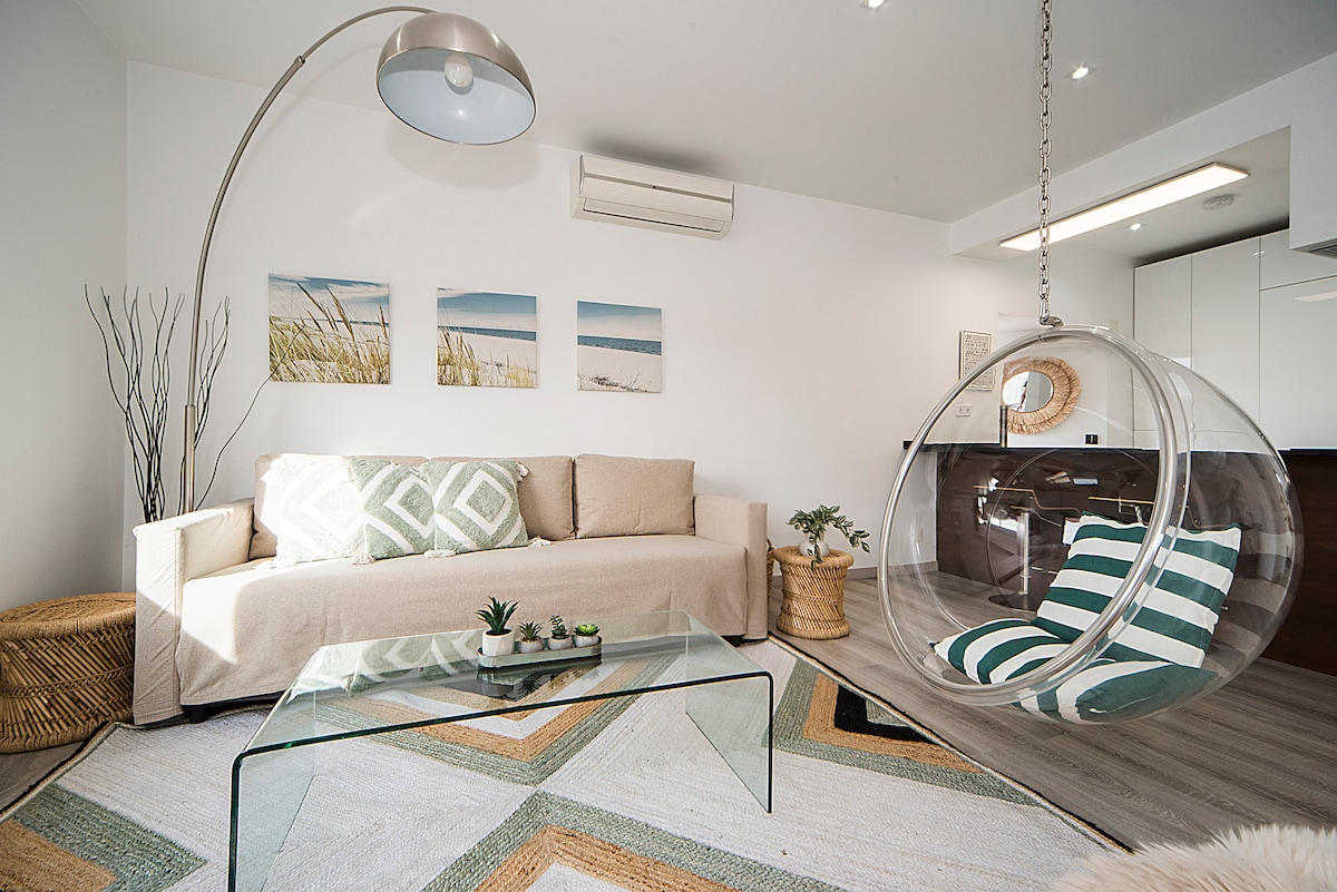 A bright and relaxing 1-bedroom beach apartment in a private villa in Estoril, ideal for guests who value privacy, comfort, and an easy base to explore Cascais, Lisbon, and Sintra. Walk to the beach, seaside promenade, restaurants, grocery shops, and the train to Lisbon. Includes AC, heating, Wi-Fi, easy check-in, and free street parking nearby. Beach boho-chic design with modern comforts for a relaxed coastal getaway, just a short walk from the ocean.