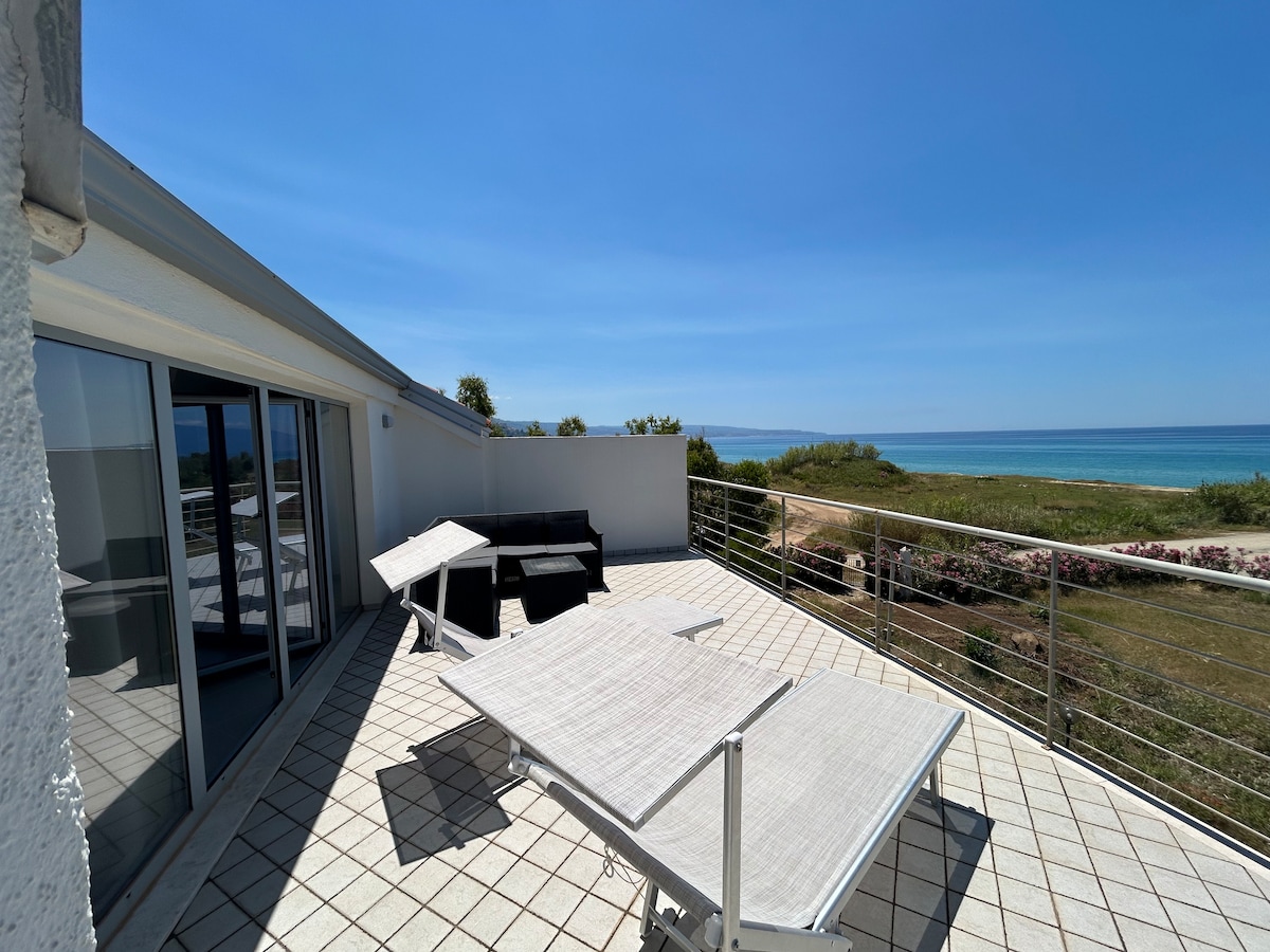 Due vetrate antistanti il patio e la terrazza con vista esclusiva sul Golfo di Squillace. Un’esplosione di blu cielo-mare e bianco e sassi faccia a vista e , per momenti speciali, la possibilità di usufruire di un ulteriore pergolato romantico e terrazze all’aperto con vista mozzafiato, direttamente sul belvedere. Cieli stellati. Per amanti della natura e vita di paese fuori dai percorsi turistici di massa. È registrato con il codice regionale CIR 079117-AAT-00010 e CIN indicato qui sotto.