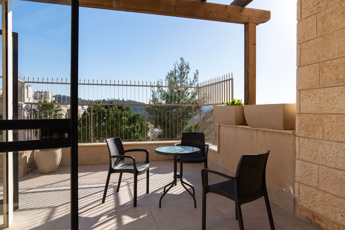 enjoy our 2 rooms apartment with stunning views gaze upon the mountains and forests of the historical and beautiful ein karem sit outside on the large veranda listen to the birds and soak in the serenity the apartment is renovated with love Quality linens and towels make this the perfect get away