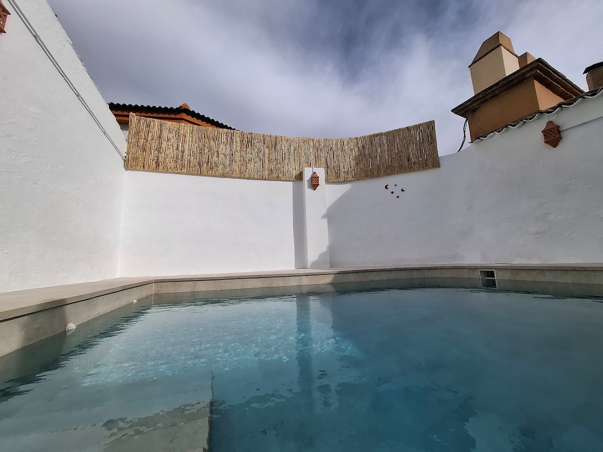 ThinkersINN, stable INTERNET, H/OFFICE, Double infinity POOL + Heated jacuzzi. A peaceful oasis invites you In the evening you can enjoy great Andalusian food, drinks, and music in the city center. There are 2 studios on the side of the Hacienda, the pool is private and belongs only to our house. The bedroom (bed 2m long), rainforest shower, AC, SmartTV, glassed terrace, kitchenette, Weber gas grill Our house is very quiet and private, just on the edge of the center, on Tarmac road/free parking.