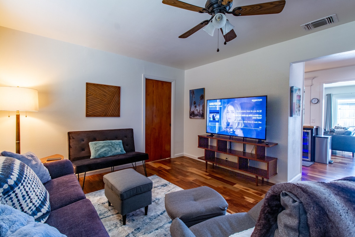 San Antonio bertemu Palm Springs. Buat kenangan selama-lamanya di rumah moden pertengahan abad kami yang selesa. Terletak di tengah-tengah untuk akses mudah ke semua tempat menarik dan membeli-belah di bandar TX yang mesra ini. Direka untuk ruang tamu luar dengan kolam air panas, BBQ dan patio. Malah kecil yang meletakkan hijau di halaman belakang! Keselesaan bergaya untuk keluarga dan rakan anda dengan dua ruang tamu, tiga bilik tidur dan dua bilik mandi penuh. Memandu Tesla? Mudah di tapak, caj percuma.