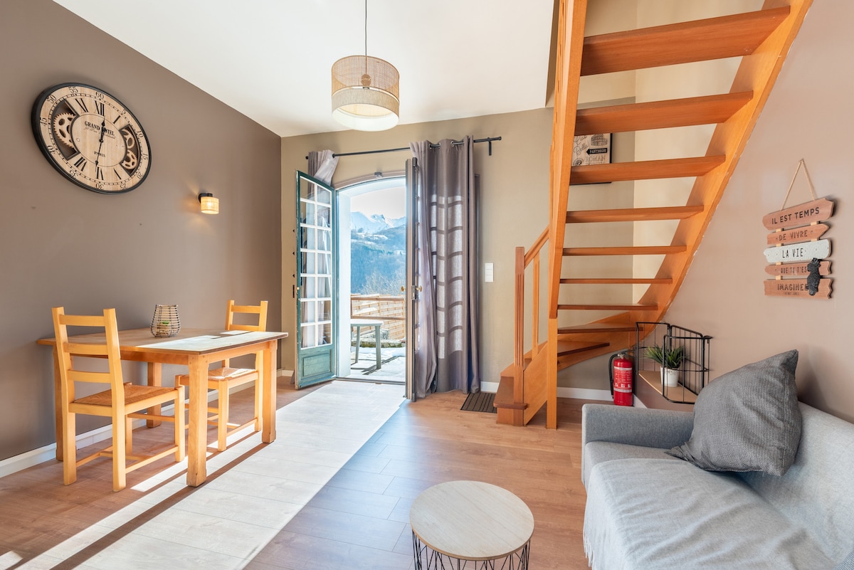 apartmen untuk 4/5 orang Kolam renang, pemandangan gunung.