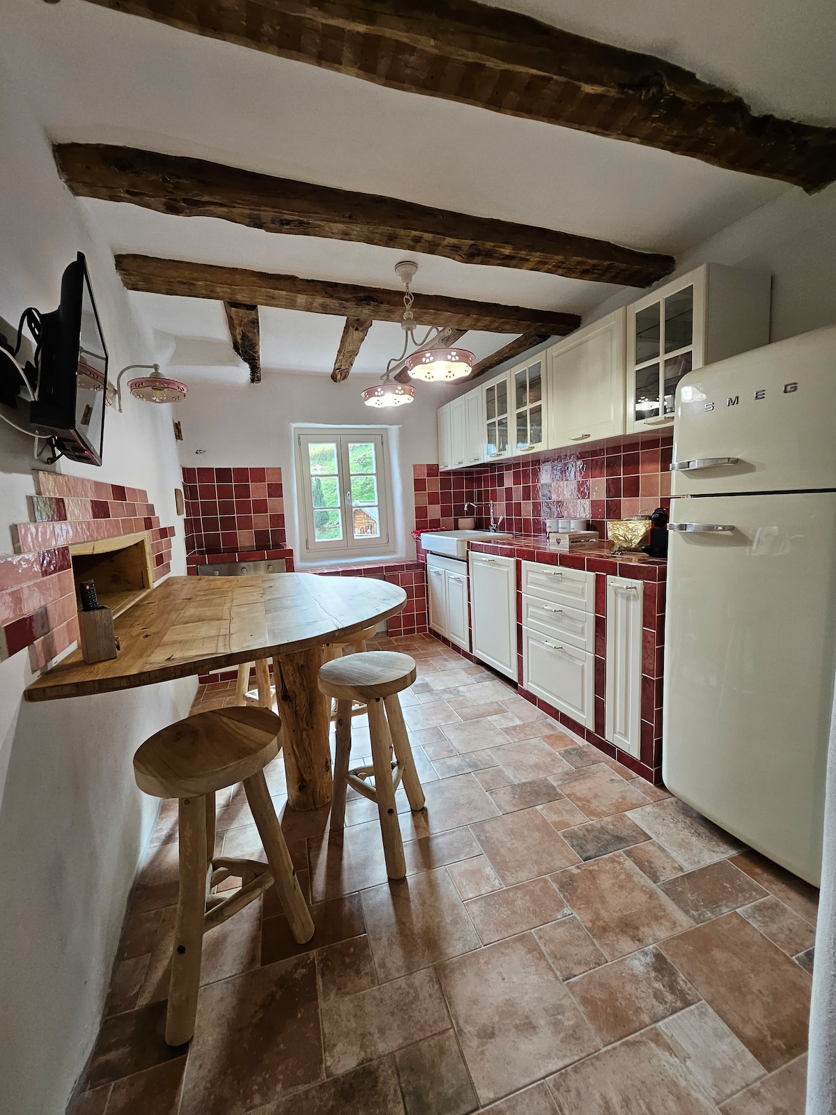 Penginapan ini merupakan ladang organik kecil yang terpencil di dalam hutan. Jalan ini berbonggol. Anda boleh sampai ke sana dengan kereta (bukan kereta rendah), berjalan kaki atau berbasikal. Rumah ini 'terdiri daripada 1 bilik tidur berganda yang mempunyai tingkap kaca besar ke lembah. 1 bilik tidur berganda disediakan untuk apiterapi dengan dua sarang lebah (musim panas), 1 bilik tidur dengan katil Perancis. Di tingkat bawah terdapat dapur yang cantik dan ruang makan yang santai. Anda boleh menyewa 2 e-Bike untuk jumlah yang kecil dan terlupa kereta! Di luar anda mempunyai jakuzi panas yang anda boleh gunakan pada bila-bila masa.
