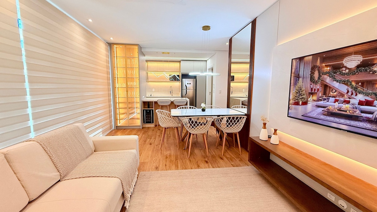 Terletak di kondominium Vêneto bergaya Itali yang mewah, ia mempunyai kolam renang panas, sauna dan gimnasium di kawasan riadah. Apartmen ini terletak 500 meter dari Super Carros dan 4 minit dari pusat bandar Gramado. Dengan balkoni besar dari ruang tamu ke bilik tidur, ia menampung sehingga 4 orang: 1 katil queen + 1 katil tambahan, dan di ruang tamu katil sofa. Ia mempunyai pendingin hawa panas/sejuk di semua bilik, pendiangan ekologi, dapur penuh, pemanggang barbeku, TV pintar di ruang tamu dan bilik tidur, ruang letak kereta tertutup dan infrastruktur yang menakjubkan.