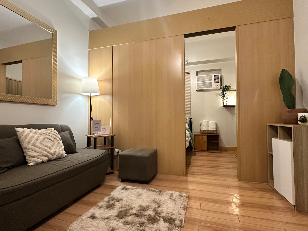 Escape to the intimate serenity of Skyloft at SMDC Trees Residences, a carefully curated urban haven. Experience a well-deserved retreat in this elegantly designed studio suite. The unique and aesthetic decor, complete with a bar counter, a game console, and a loft bed beside a panoramic window, provides the perfect setting for uninterrupted stargazing. Reconnect with your partner or share this tranquil haven with a dear friend. Book now and make memories! ♥️🌥️