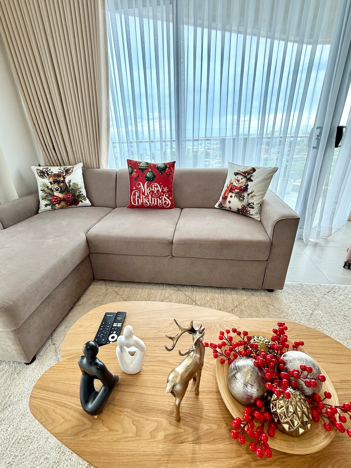 Enjoy a stylish, calming experience in 102sqm, newly and fully furnished two-bedroom condo unit. This gem is located in Tambuli Seaside with sea views from the living room and every bedroom. Enjoy two tastefully decorated bedrooms, two bathrooms each with a shower heater, a spacious living and dining area with a TV, an equipped kitchen, a large balcony to enjoy the sun and two carpark slots. We offer 2 FREE day-use vouchers (day pass only, does not include food) if 5-night consecutive booking.