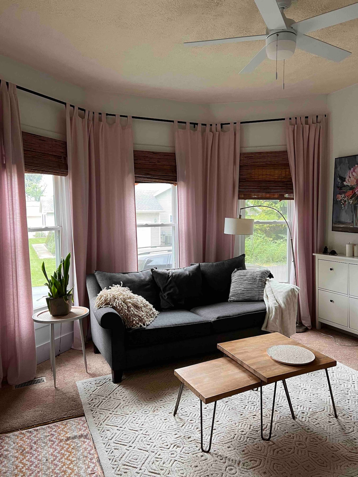 Newly renovated and dedicated bungalow with a modern zen twist. Near downtown Yellow Springs. Quiet and cozy front unit of a duplex with nice yard, trees and covered parking. Bathroom has heated ceramic tile floor. The whole unit is decorated with new furniture, art and a new 50 inch smart TV. Step into the peaceful zen-like design, take a deep breath, and make this your home away from home. We also host a property next door "Bicycle built for 2", if you have 5-7 people you could book both.