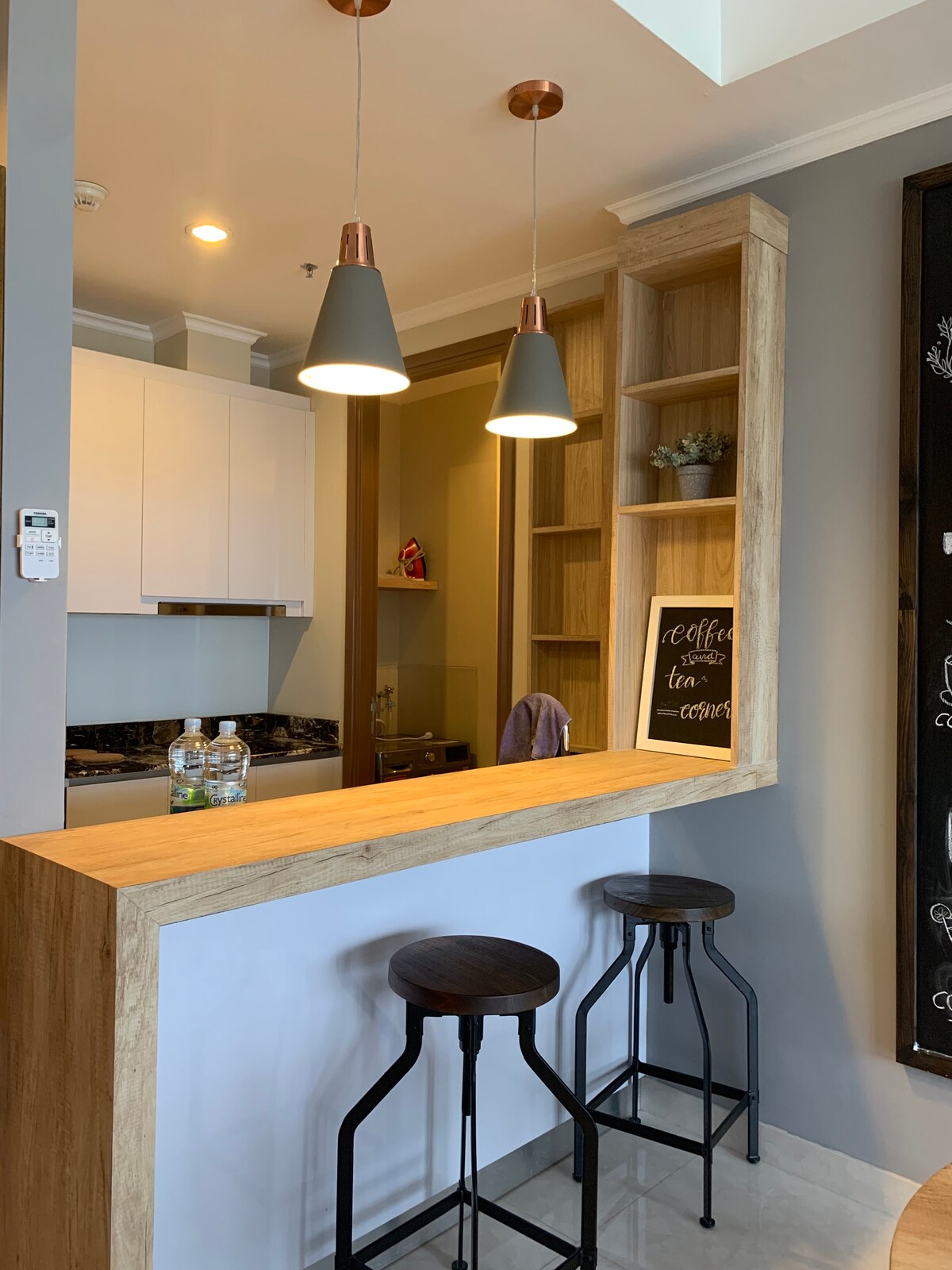 Studio 24 meter persegi yang elegan di pusat Jakarta, menggabungkan gaya dan kemudahan. Termasuk dapur, Wi-Fi laju, penulen udara, TV pintar 43", sistem bunyi dan Netflix. Ia sesuai untuk pelbagai jenis penginapan, dengan akses tanpa sentuhan dan kemudahan seperti kolam renang, jakuzi, gimnasium dan bola keranjang, Kini menampilkan dispenser Osmosis Terbalik & pelupusan sisa makanan, Gambar menunjukkan dapur gas yang telah digantikan dengan periuk induksi (untuk mematuhi garis panduan apartmen untuk bahaya kebakaran)