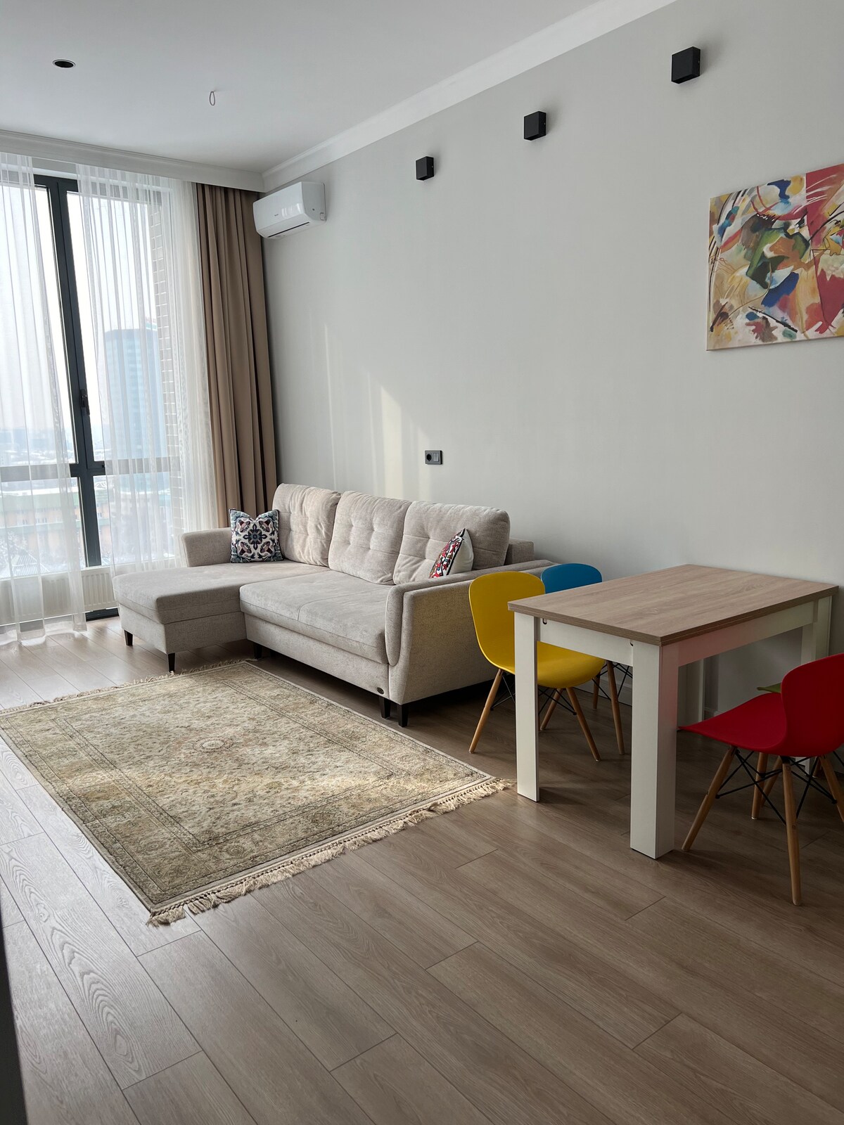 Apartmen loteng anggun yang direka dengan bahan dan perabot berkualiti tinggi untuk penginapan keselesaan anda. Dengan pemandangan bandar dan matahari terbenam. Mempunyai semua katil dan tuala yang diperlukan seperti di hotel. Kejiranan ini mempunyai McDonalds, Starbucks, hotel RIXOS, restoran masakan kebangsaan. Apartmen ini terletak di pusat Almaty dan mudah berhubung ke mana-mana bahagian bandar hanya dalam masa beberapa minit. Di tingkat bawah terdapat pasar mini, kedai wain & bir 24/7, kedai roti & kopi segar. Kami menawarkan pendaftaran tetamu asing percuma