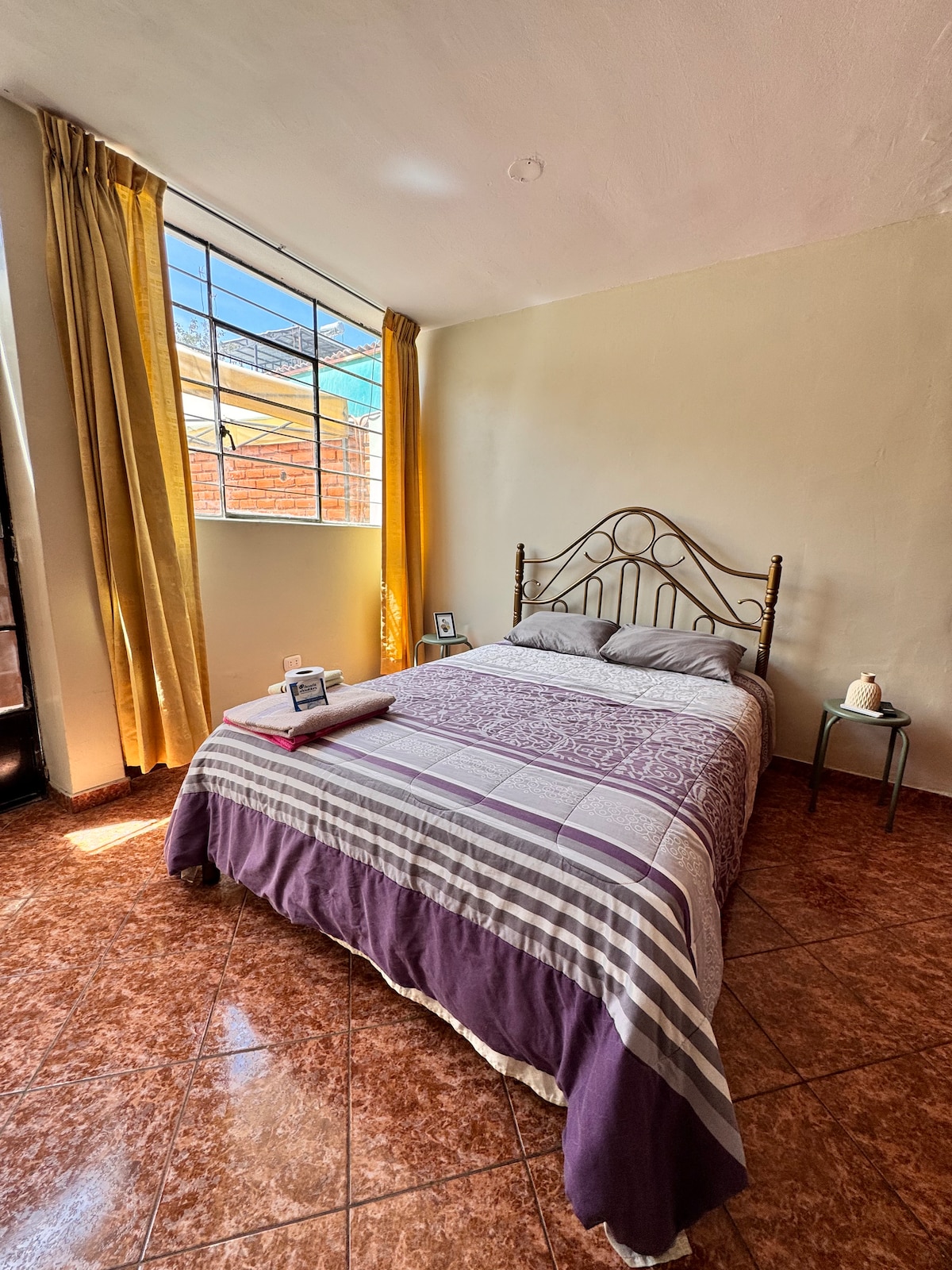 Bersantai di bilik keluarga yang luas dengan kawasan duduk luar, sesuai untuk berjemur. Bilik double yang selesa ini dengan katil single tambahan (muat 3 orang) berada di tingkat bawah di pusat Arequipa, di kawasan yang tenang dan selamat. Nikmati bilik mandi persendirian, peti sejuk untuk kegunaan peribadi, dan dapur lengkap di tingkat atas. Akses mudah ke tempat-tempat menarik berdekatan: 10 minit berjalan kaki ke Plaza de Armas, 7 minit ke Monasterio de Santa Catalina, dan 3 minit ke San Lázaro, kedai dan restoran.